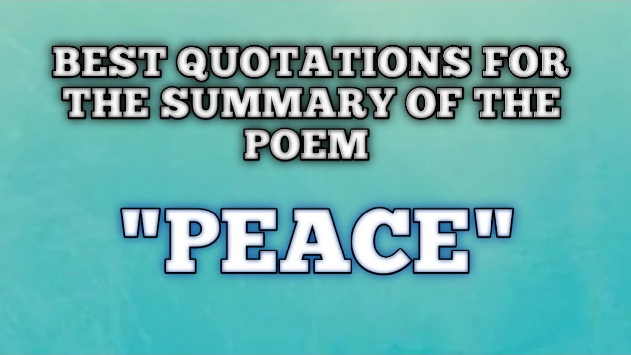 Best Quotations for the Summary of the poem “PEACE” YouTube